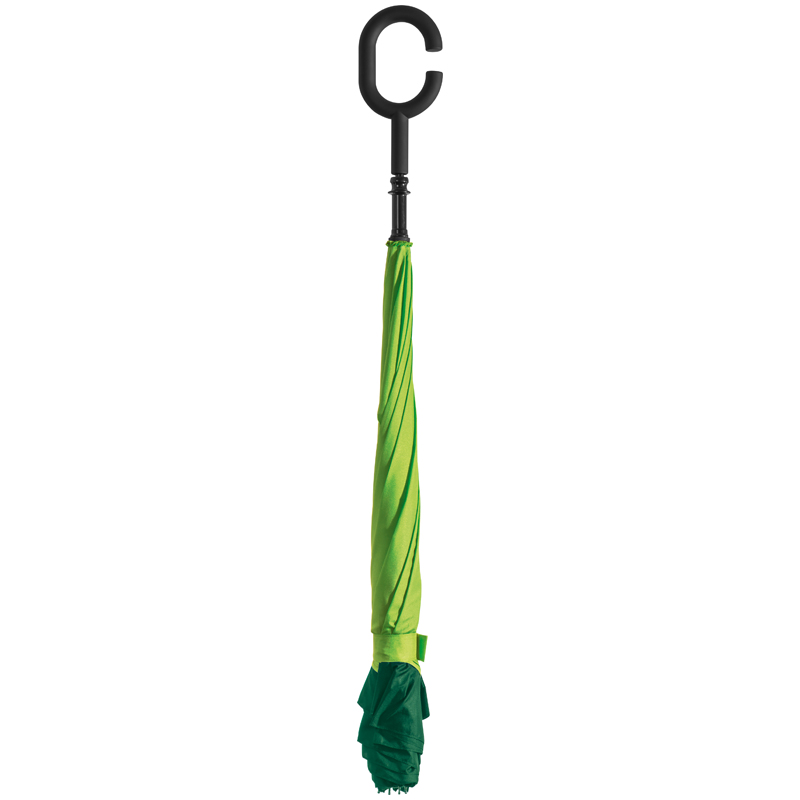 Зонт, который складывается наоборот отличается от традиционных, так что вы можете, например, легко попасть в машину во время дождя. Зонт изготовлен из двойного материала типа pongee 190T.
